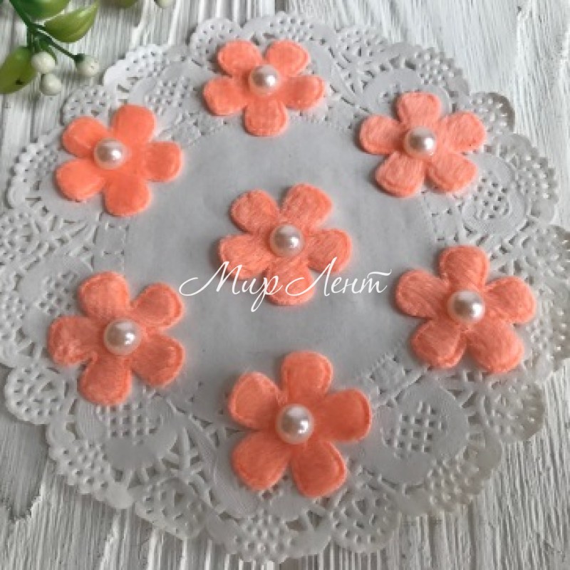 Цветочек из фетра с жемчугом, 2,5 см, темный персик, упаковка 1000 шт.
