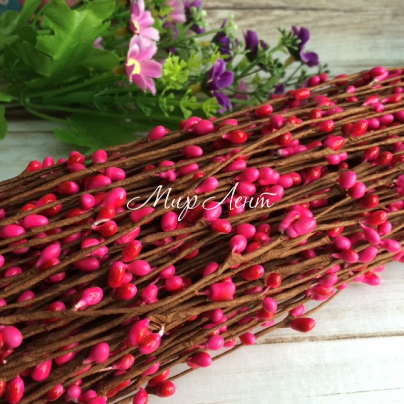 Декоративная ветка с тычинками, 40 см, малиновый, упаковка 100 шт.