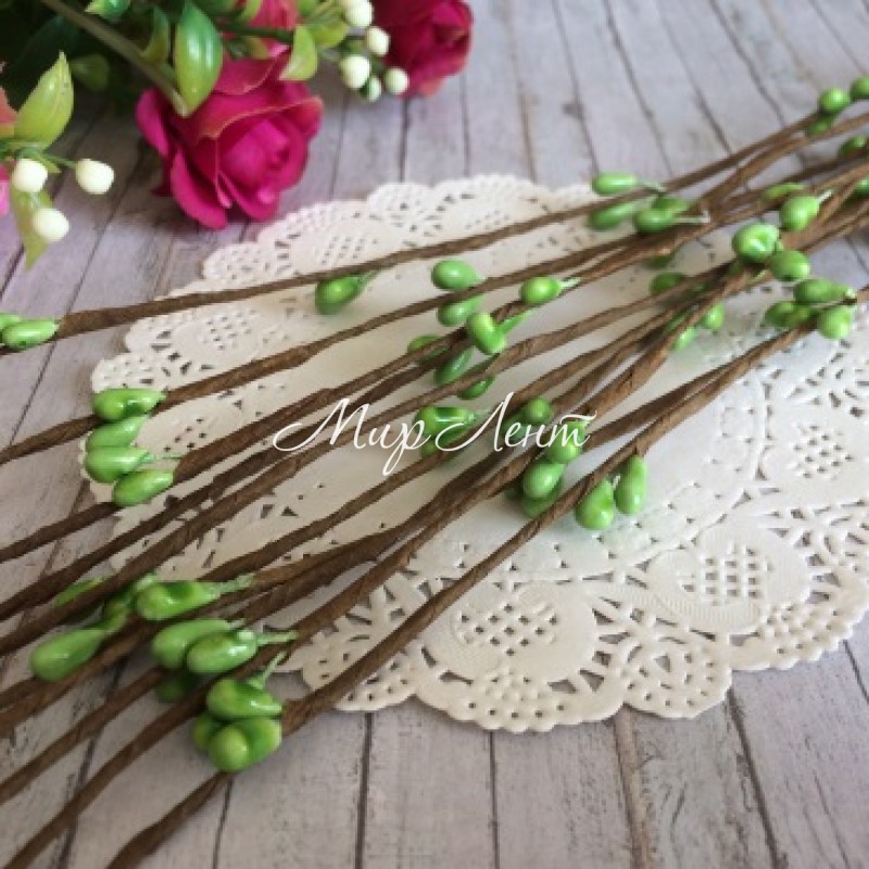 Декоративная ветка с тычинками, 40 см, светло-оливковый, упаковка 100 шт.