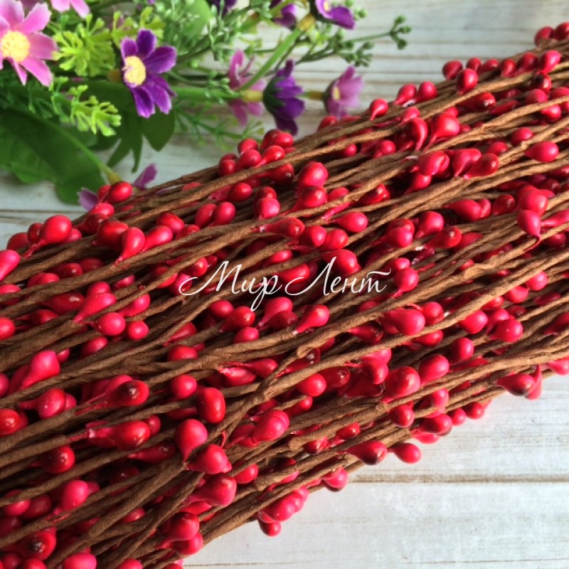 Декоративная ветка с тычинками Big, 65 см, красный, упаковка 100 шт.
