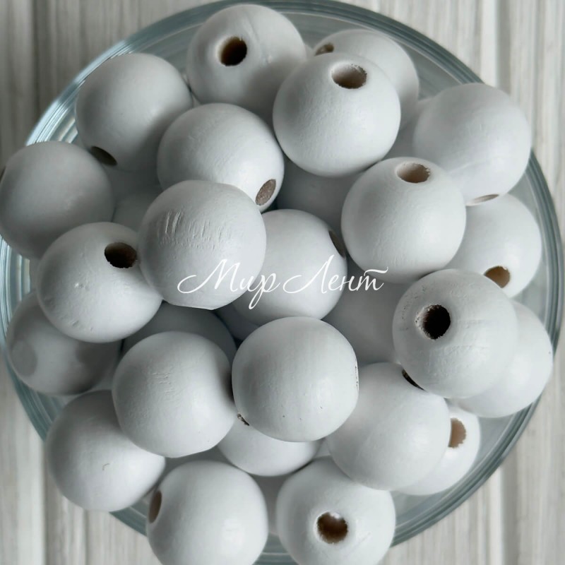 Деревянные бусины круглые, 20 мм, белые, упаковка 500 г