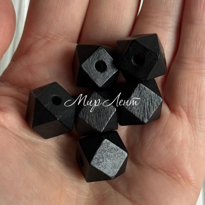 Деревянные бусины куб, 16 мм, черные, упаковка 500 г