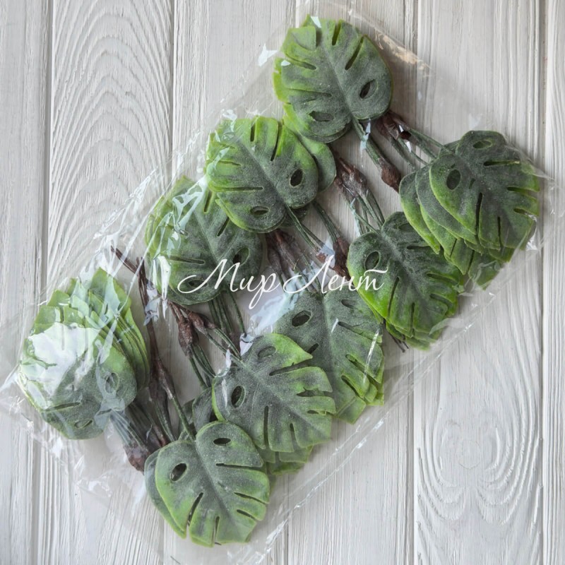 Добавка монстеры (С30204), 7х14 см, зеленый, упаковка 10 шт.
