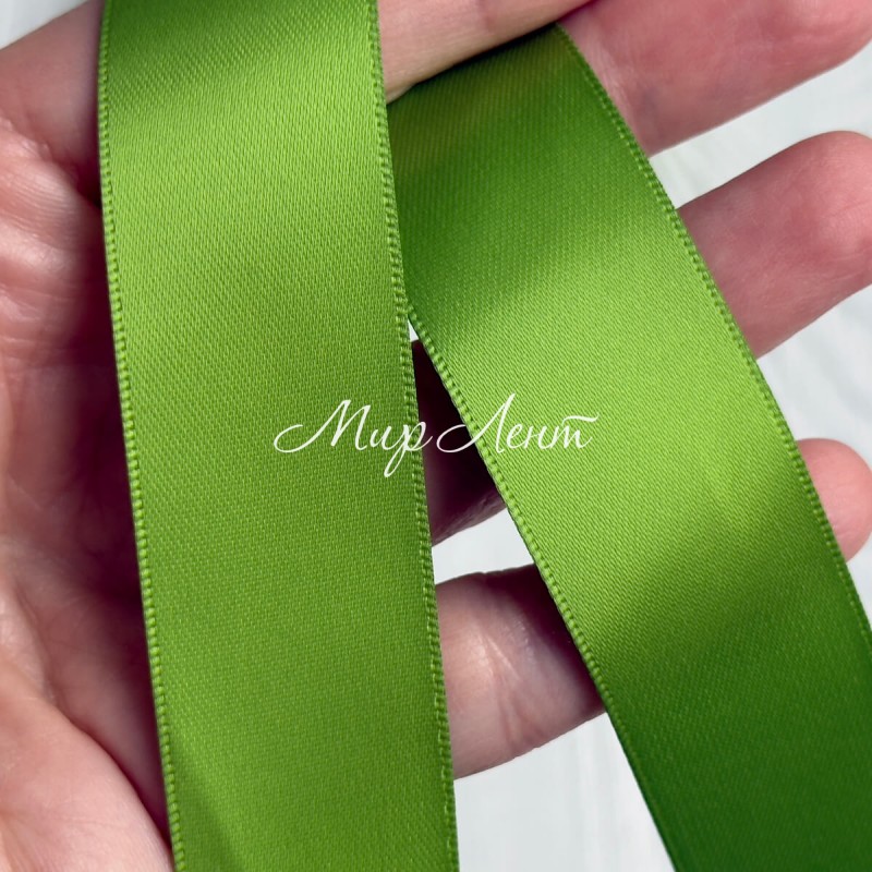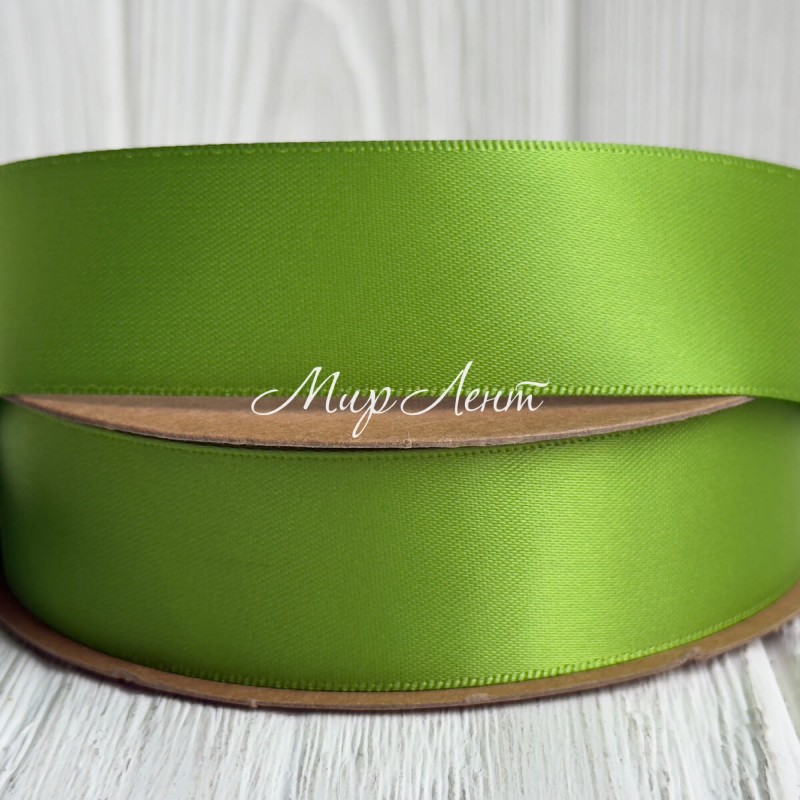 Двусторонняя атласная лента New (премиум), 2,5 см, киви, рулон 23 м