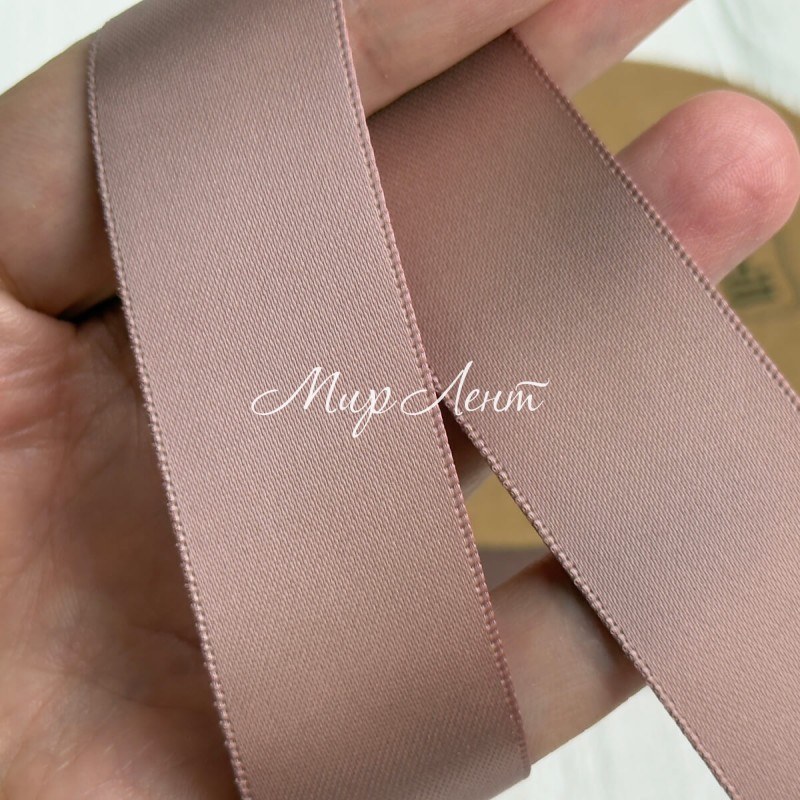Двусторонняя атласная лента New (премиум), 2,5 см, кофейная, рулон 23 м