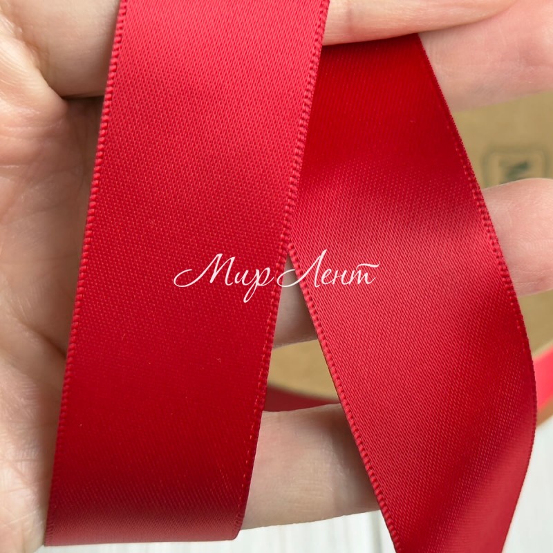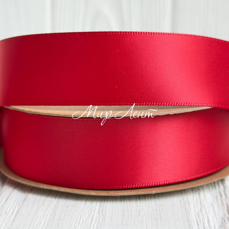Двусторонняя атласная лента New (премиум), 2,5 см, красная, рулон 23 м
