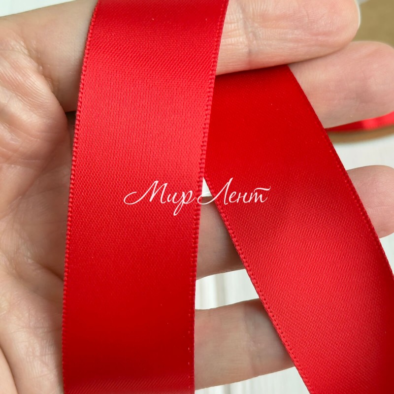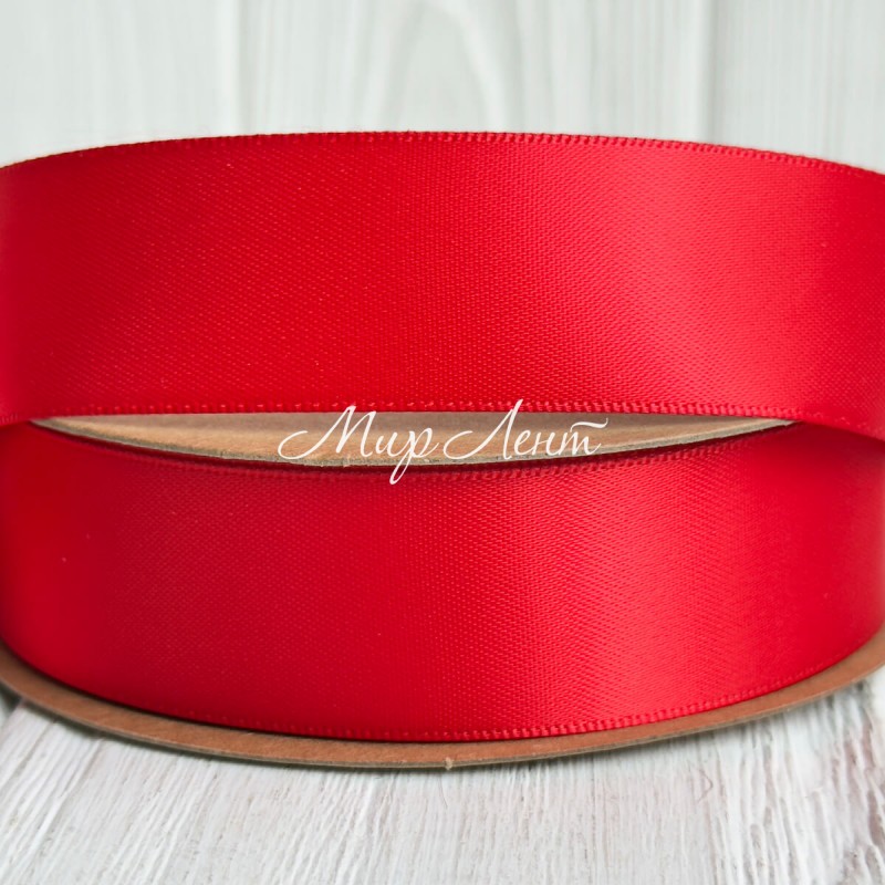 Двусторонняя атласная лента New (премиум), 2,5 см, светло-красная, рулон 23 м