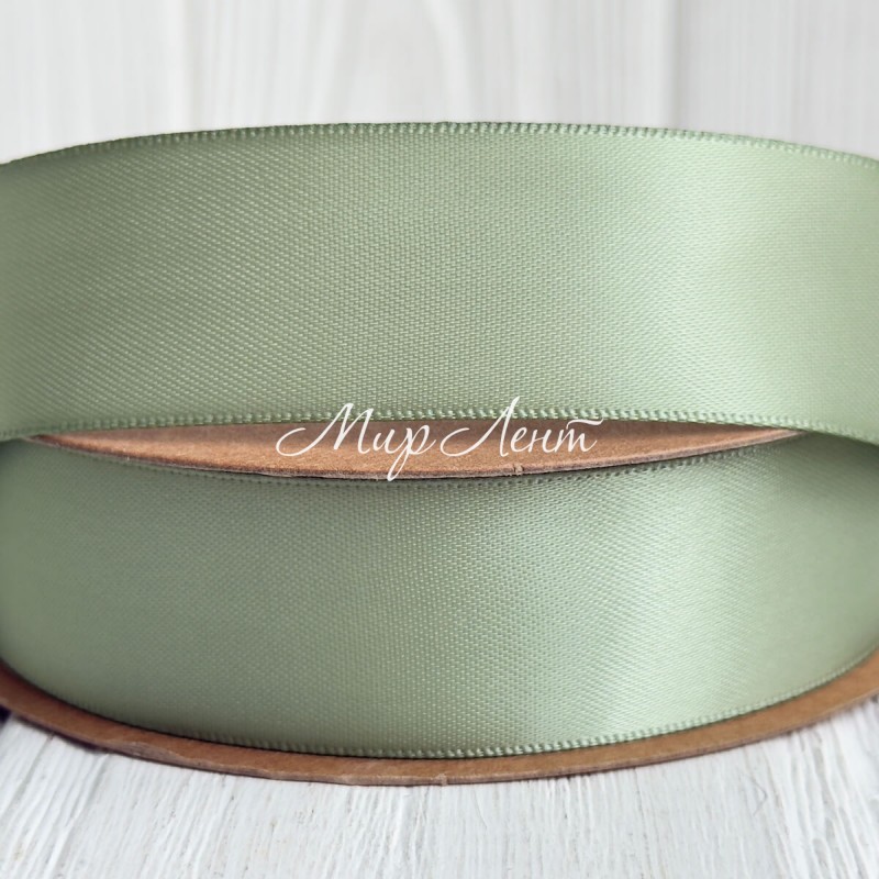 Двусторонняя атласная лента New (премиум), 2,5 см, нежно-оливковая, рулон 23 м