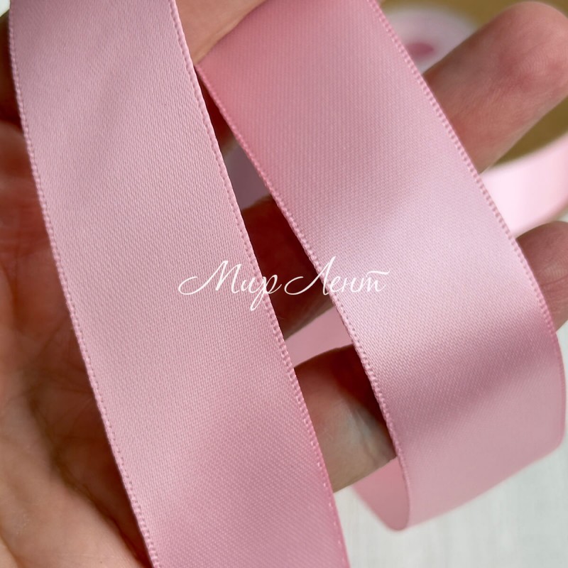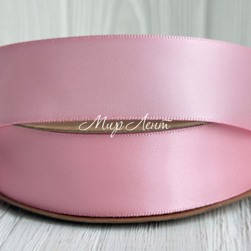 Двусторонняя атласная лента New (премиум), 2,5 см, светло-розовая, рулон 23 м