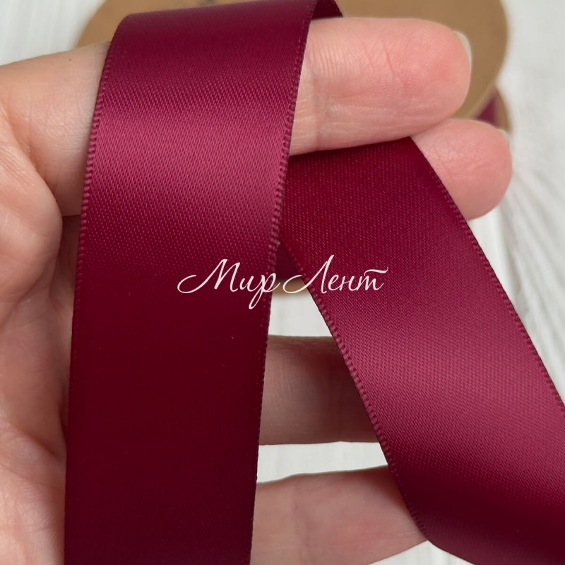 Двусторонняя атласная лента New (премиум), 2,5 см, винная, рулон 23 м