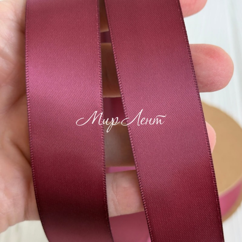 Двусторонняя атласная лента New (премиум), 2,5 см, винный, рулон 23 м
