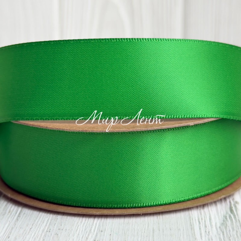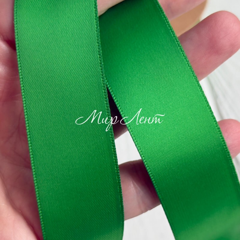 Двусторонняя атласная лента New (премиум), 2,5 см, зеленая, рулон 23 м