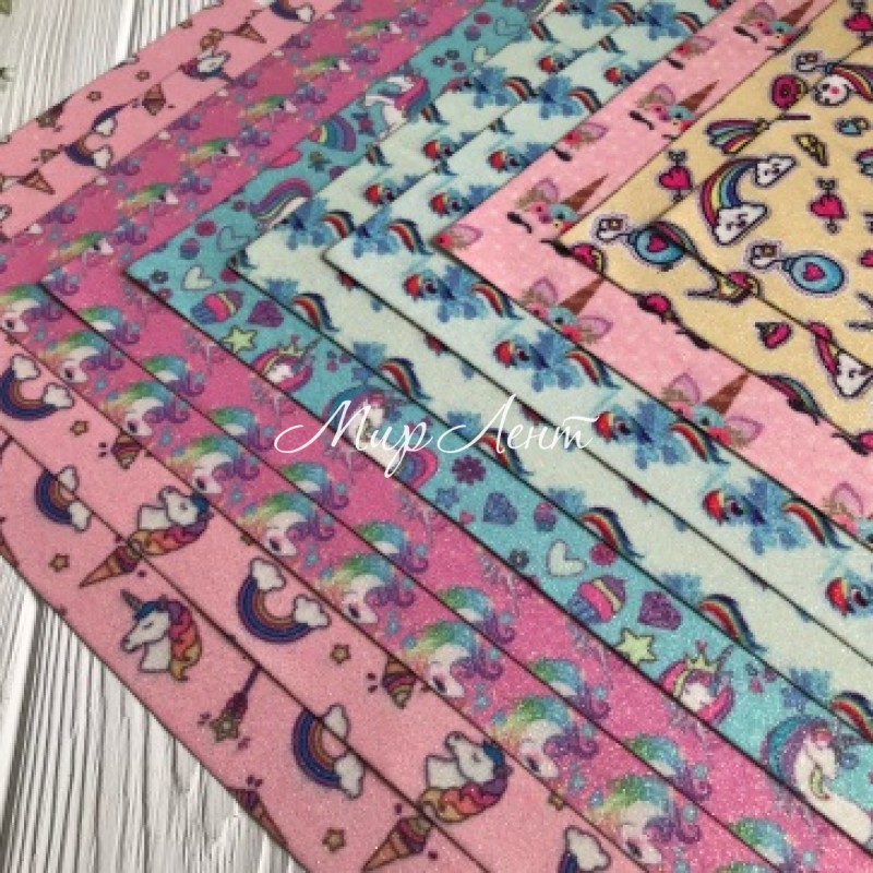 Экокожа блеск (19011104), 20х30 см, единороги, упаковка 10 шт.