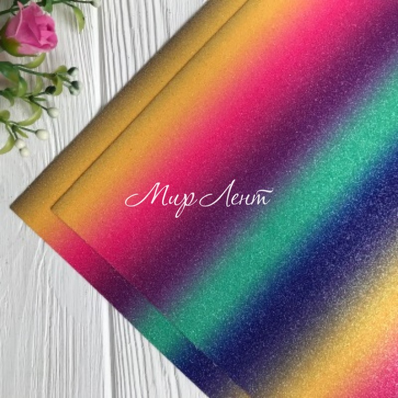 Экокожа блеск радужный (18801532), 20х30 см, широкое горизонтальное омбре, упаковка 10 шт.