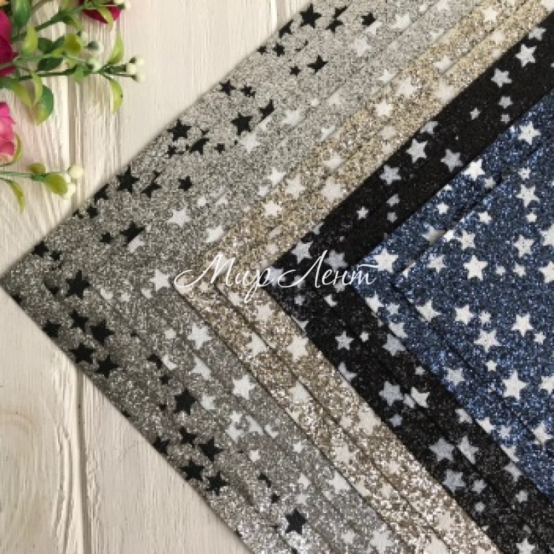 Экокожа блеск звездочки (№188012), 20х30 см, набор 10 шт.