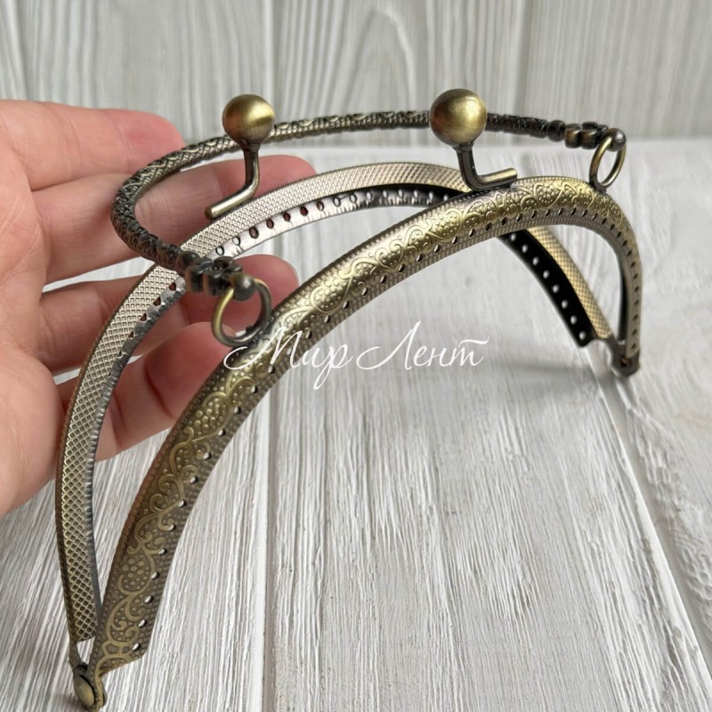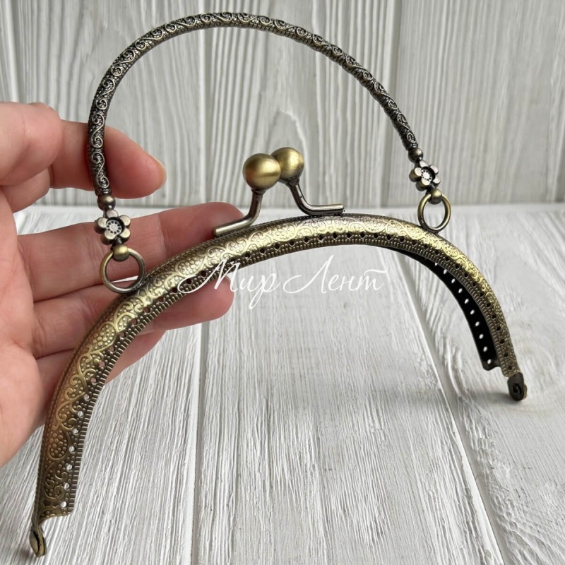 Фермуар для сумки полукруглый с ручкой, 17 см, антик, шт.