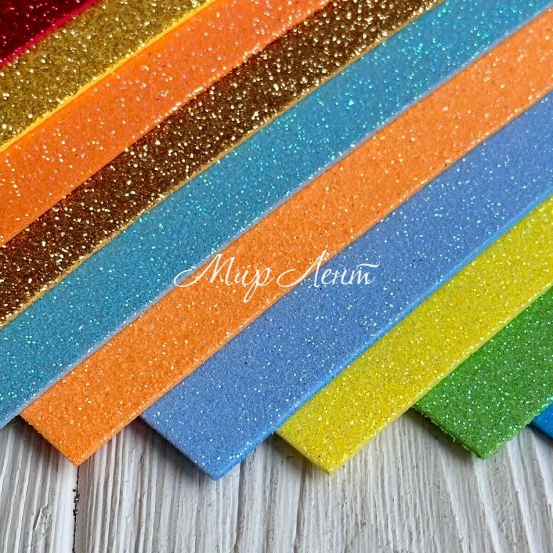 Фоамиран с глиттером, 1,8 мм, разноцветный микс, 20х30 см, упаковка 10 шт.