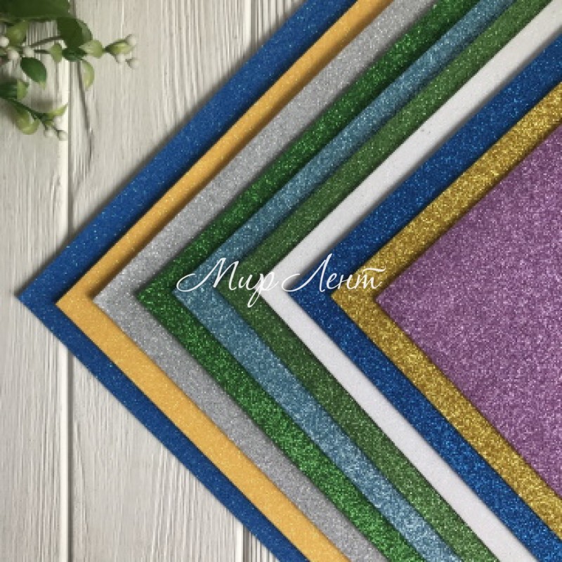 Фоамиран с глиттером, 2 мм, цветной микс, 50х50 см, упаковка 10 шт.