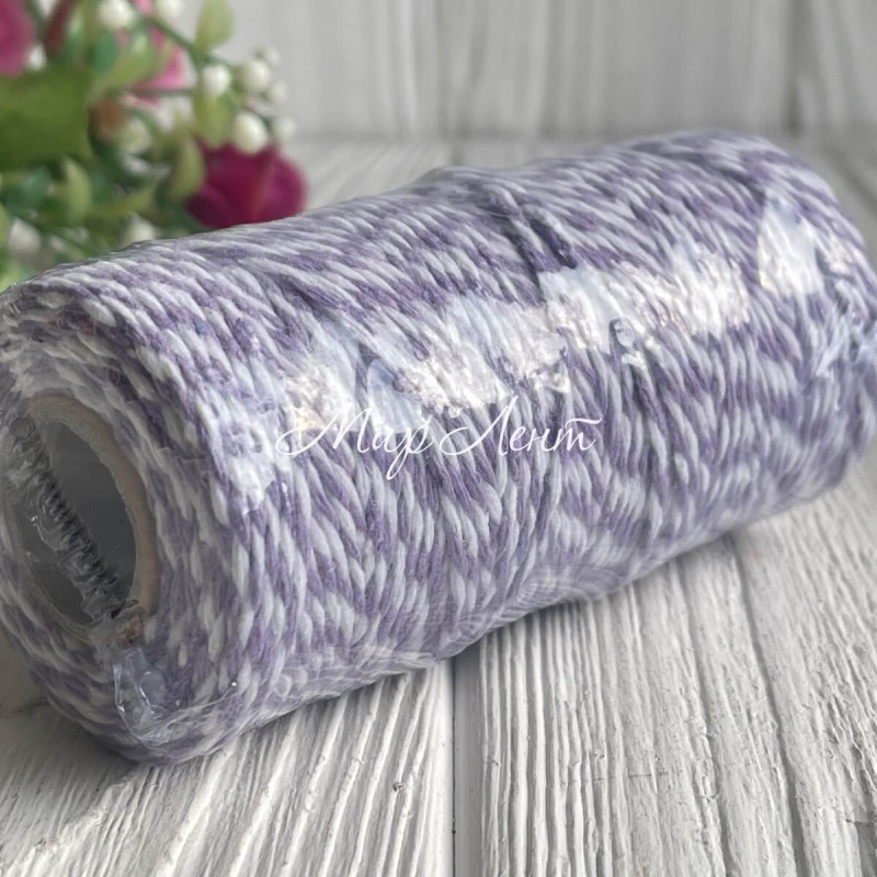 Хлопковый шнур, 2 мм, бело-лавандовый, рулон 100 м