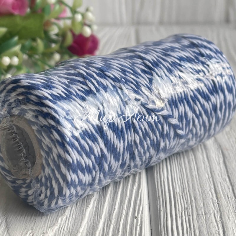 Хлопковый шнур, 2 мм, бело-темно-синий, рулон 100 м