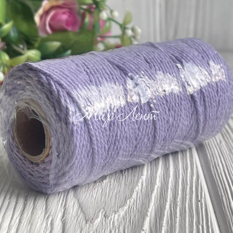 Хлопковый шнур, 2 мм, лавандовый, рулон 100 м