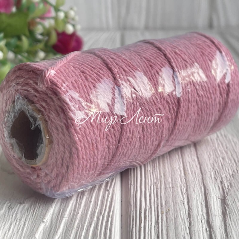 Хлопковый шнур, 2 мм, светло-розовый, рулон 100 м