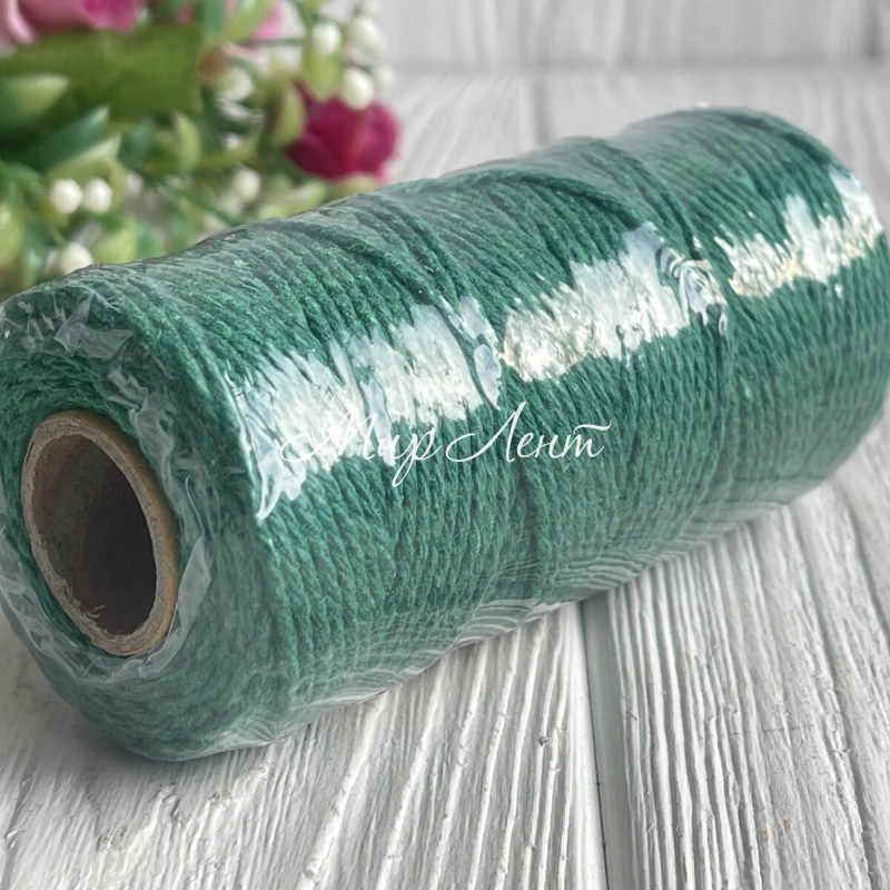 Хлопковый шнур, 2 мм, зеленый, рулон 100 м