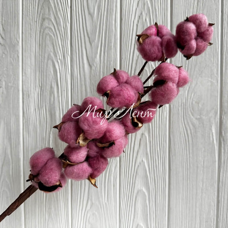 Хлопок на ветке, 60 см, пудрово-баклажановый, шт.