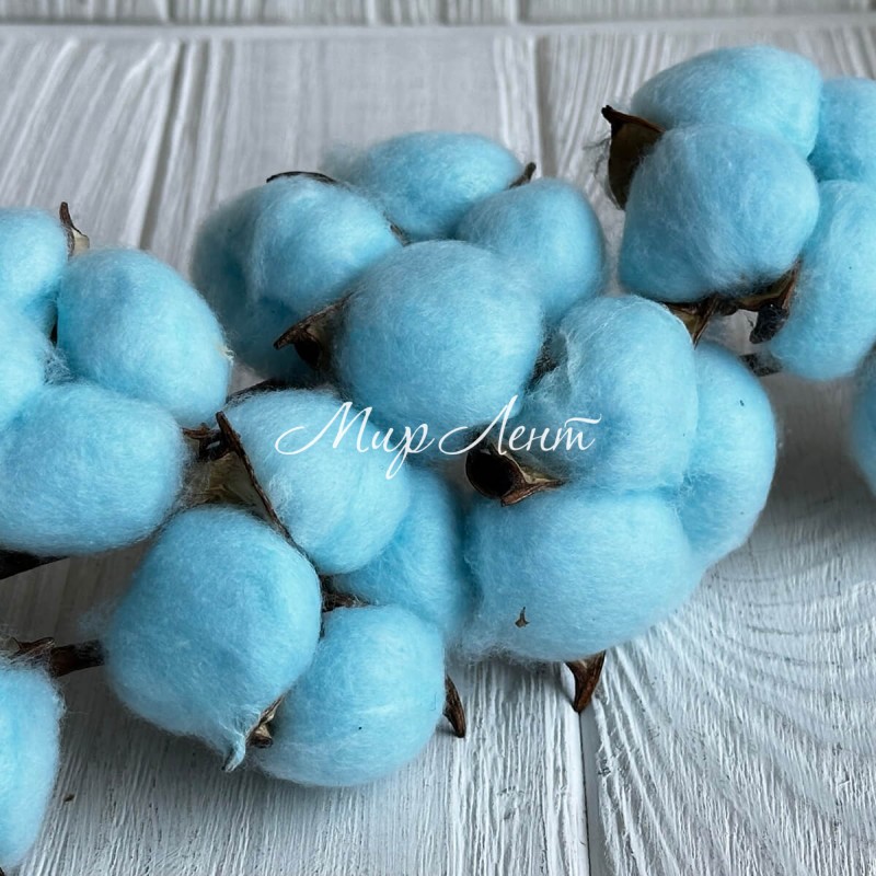 Хлопок на ветке, 60 см, светло-бирюзовый, шт.