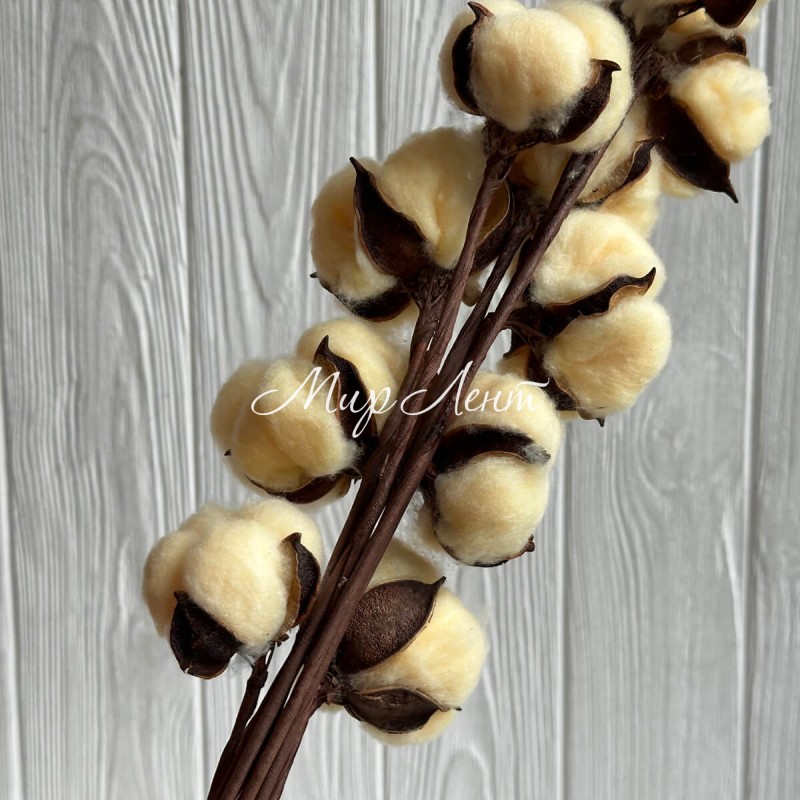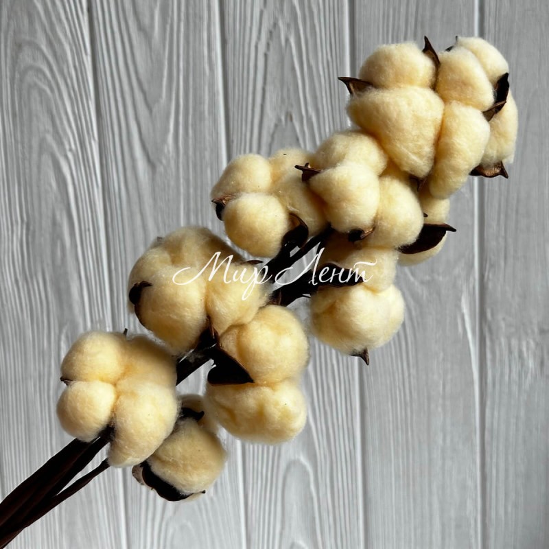 Хлопок стабилизированный на ножке, 38 см, кремовый, упаковка 10 шт.