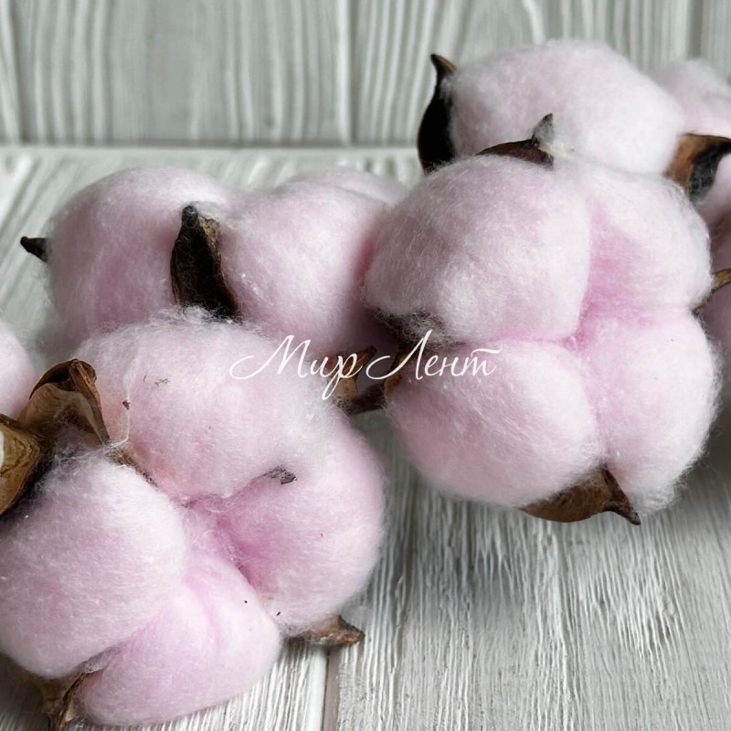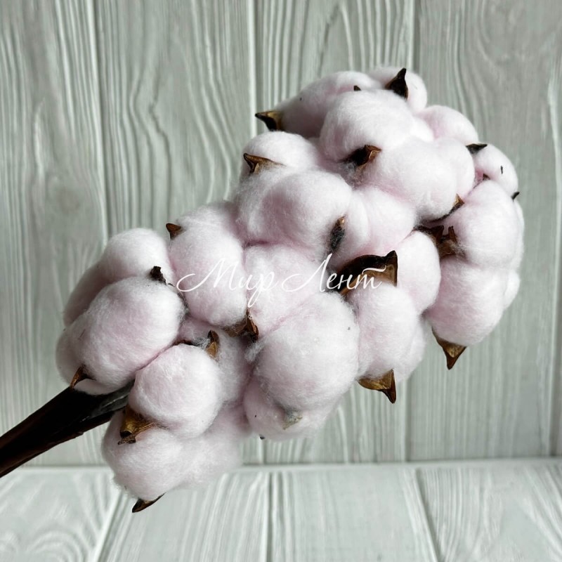 Хлопок стабилизированный на ножке, 38 см, нежно-розовый, упаковка 10 шт.