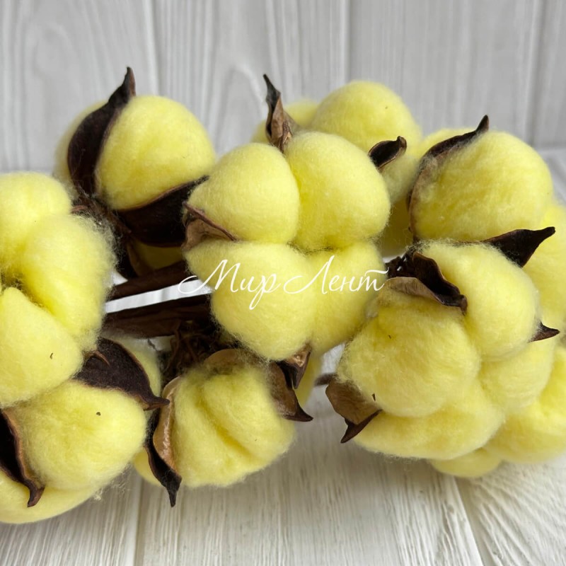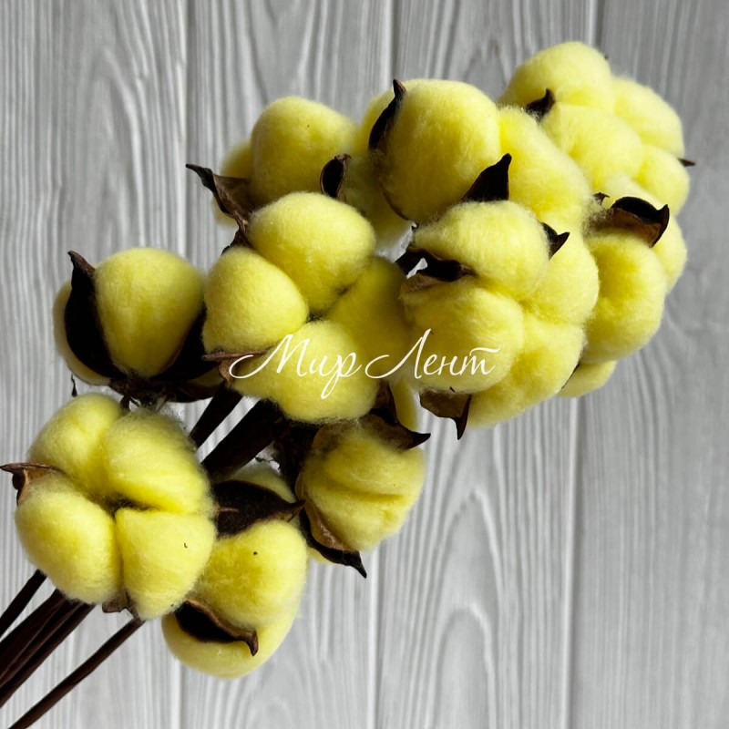Хлопок стабилизированный на ножке, 38 см, желтый, упаковка 10 шт.