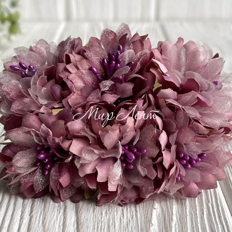 Хризантема тканевая с фатином, 4 см, баклажановая, упаковка 48 шт.