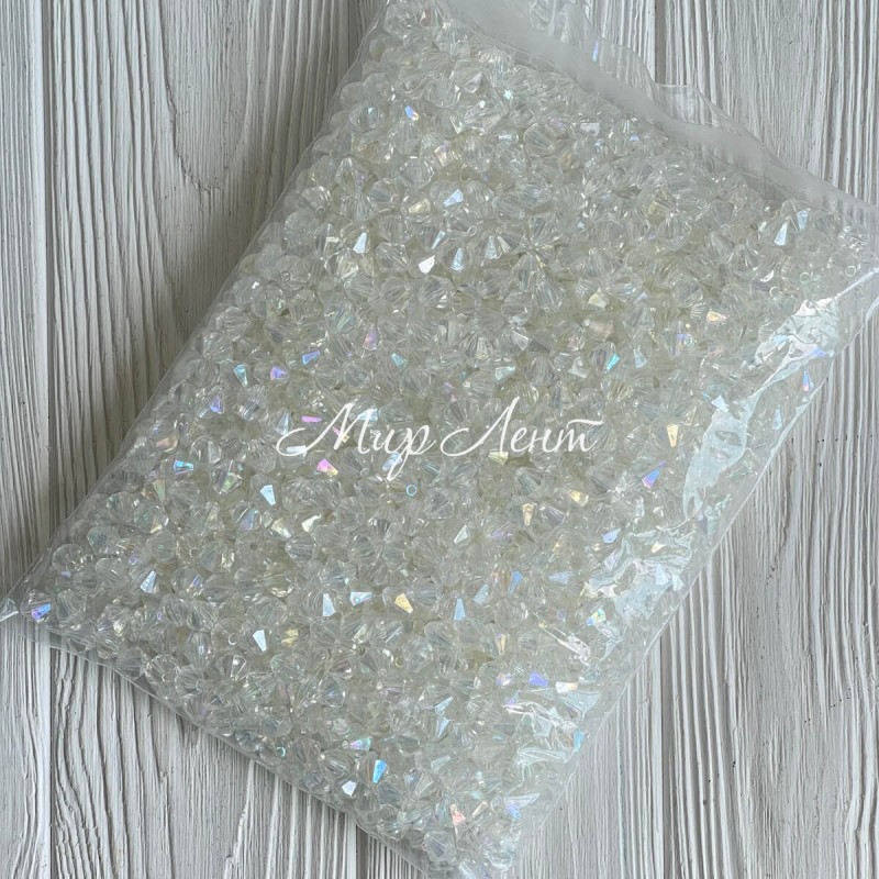 Хрусталь (ромб), 8 мм, прозрачный перламутр (пластик), упаковка 500 г