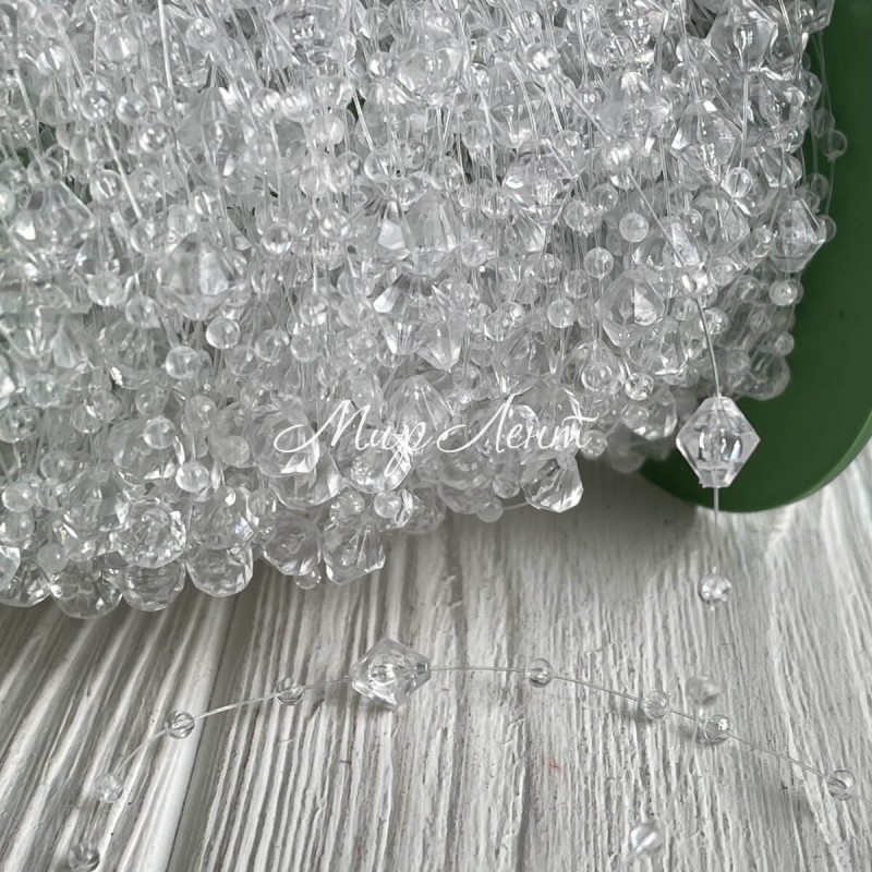 Хрустальная лента-бусинка (С30159), 8 мм, прозрачная ромбовидная, рулон 60 м