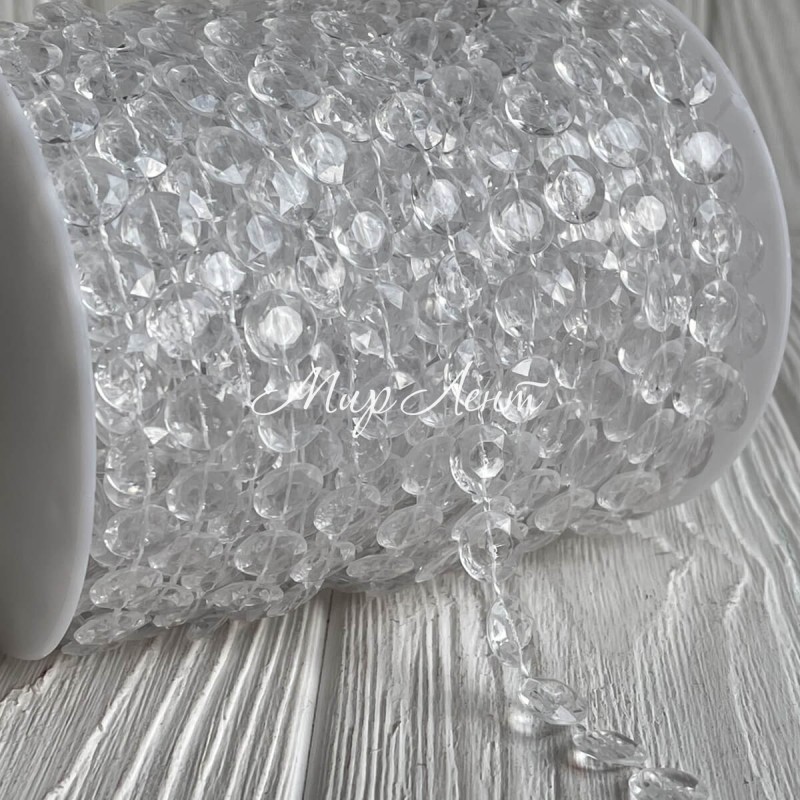Хрустальная лента-бусинка (С30160), 10 мм, прозрачная, рулон 30 м