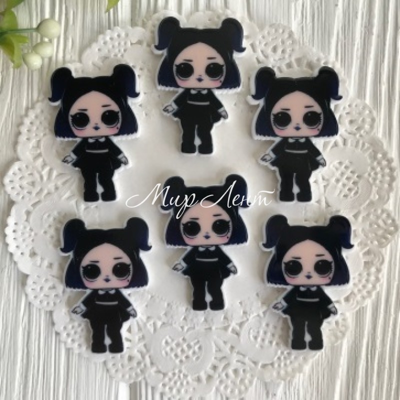 Кабошон Lol, c черными волосами и черном костюме, 4х2,7 см, упаковка 20 шт.