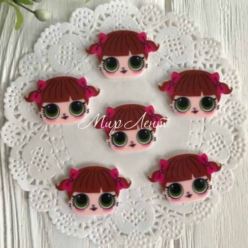 Кабошон Lol, c коричневыми волосами и малиновыми бантиками, 3,5х2,2 см, упаковка 25 шт.