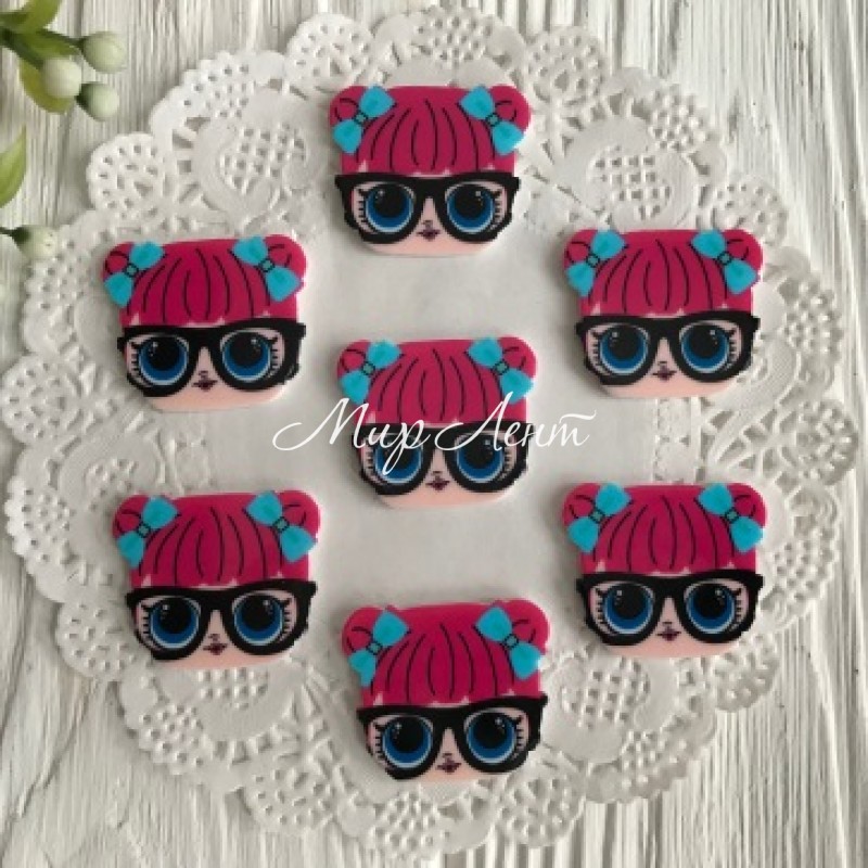 Кабошон Lol, c малиновыми волосами и очках, 2,8х2,3 см, упаковка 25 шт.