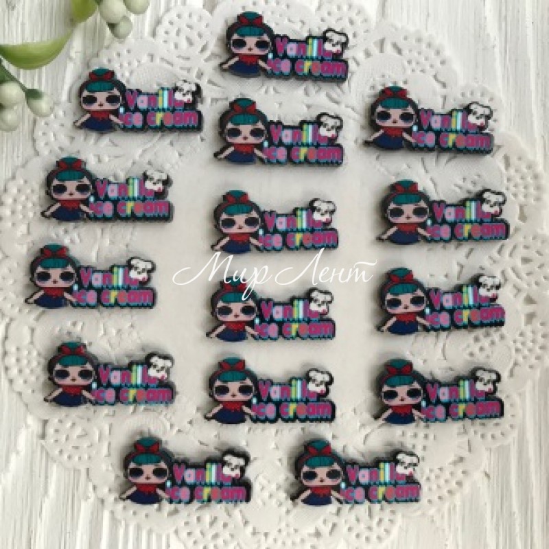 Кабошон Lol с надписью, 2,5х1,5 см, Vanilla ice cream, упаковка 25 шт.
