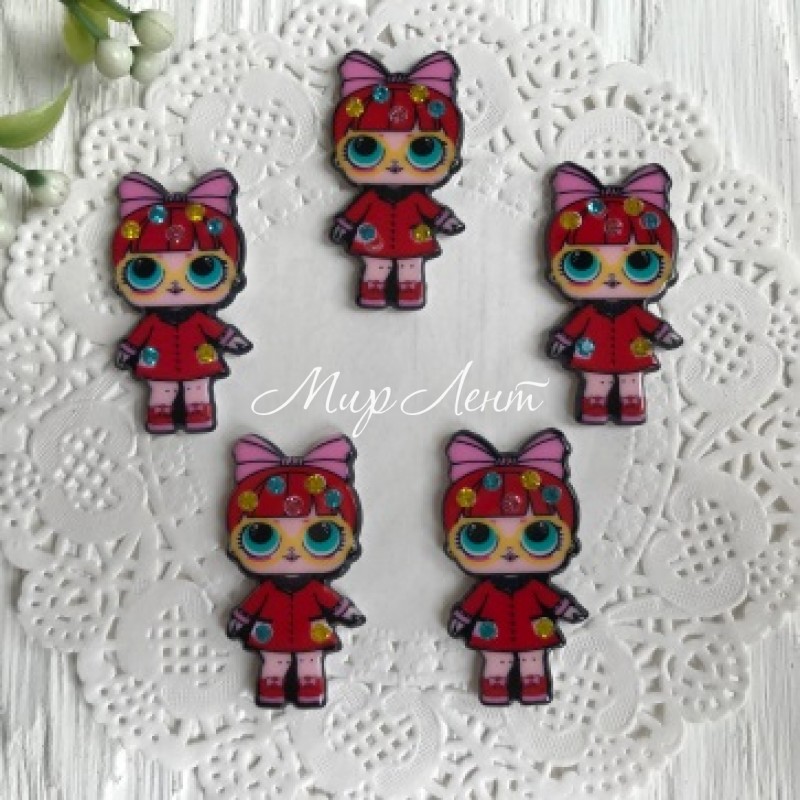 Кабошон Lol со стразами, 3,5 см, в пальто красном, упаковка 25 шт.