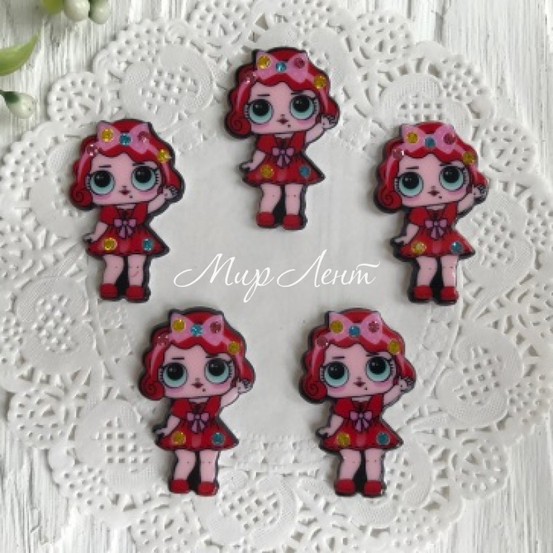 Кабошон Lol со стразами, 3,5 см, в платье красном и повязке, упаковка 25 шт.