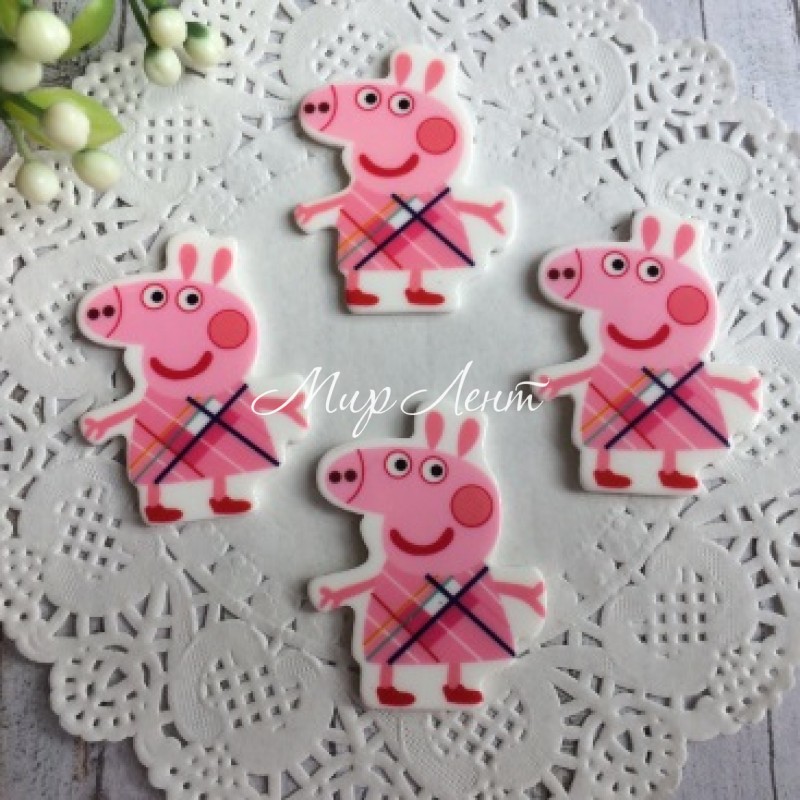 Кабошон, Свинка Пеппа, 3,4х2,7 см, розовое платье с синей полоской, упаковка 25 шт.