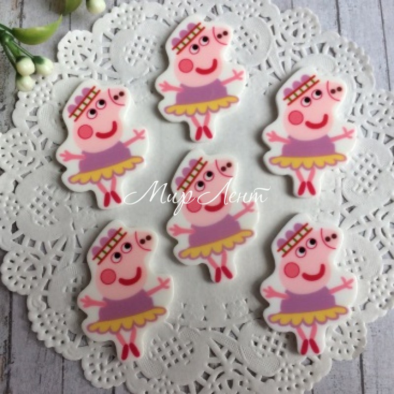 Кабошон, Свинка Пеппа, 3,6х2,5 см, сиренево-желтое платье, упаковка 25 шт.