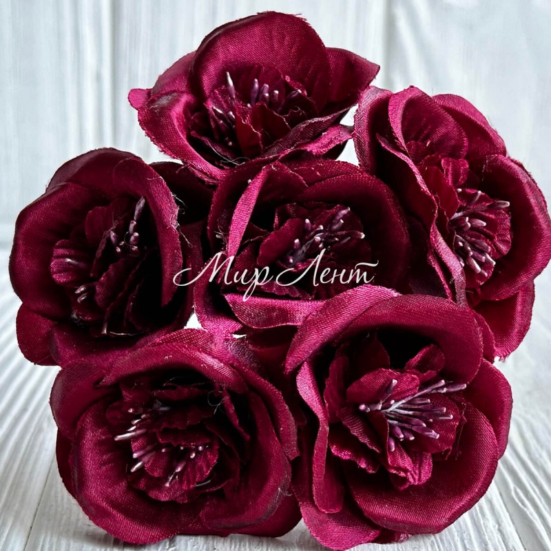 Камелия (букет), 4,5х12 см, бургунди, упаковка 36 шт.