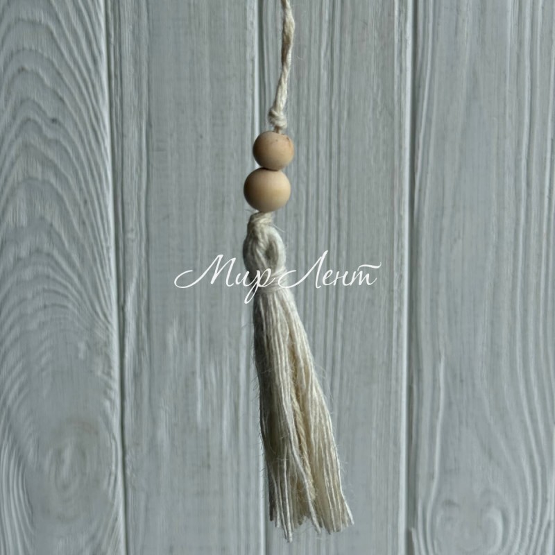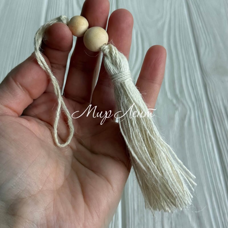 Кисточка декоративная с хлопка (D30196), 22 см, белая, Большая упаковка 50 шт.