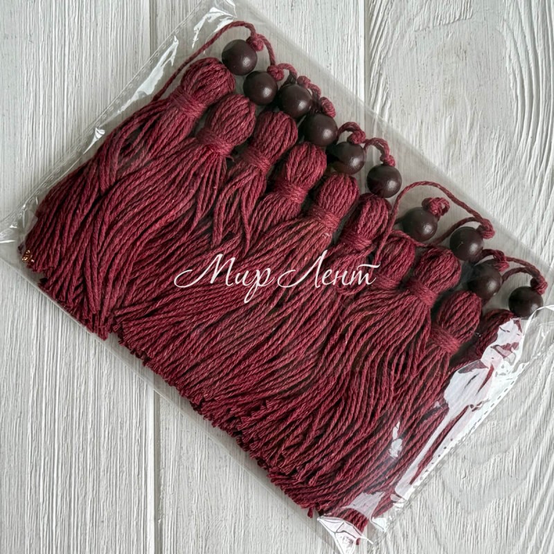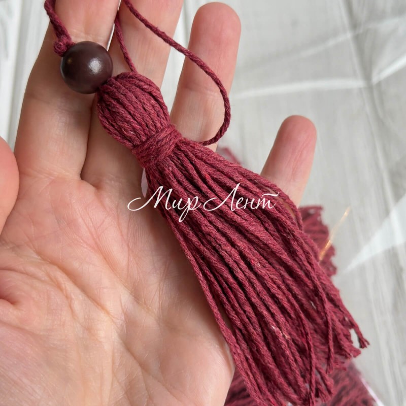 Кисточка декоративная с хлопка (D30196), 22 см, бордовая, упаковка 10 шт.