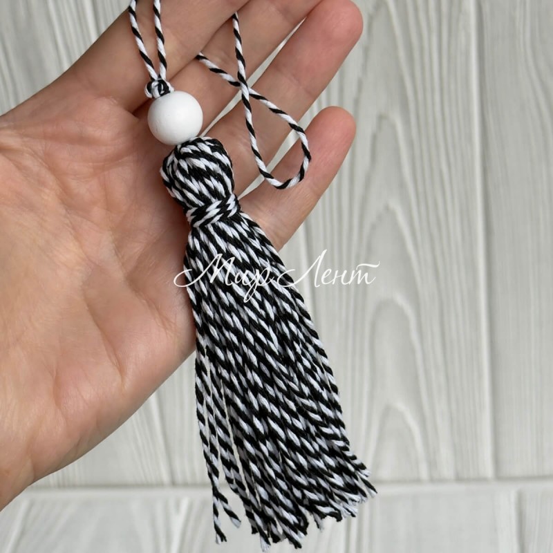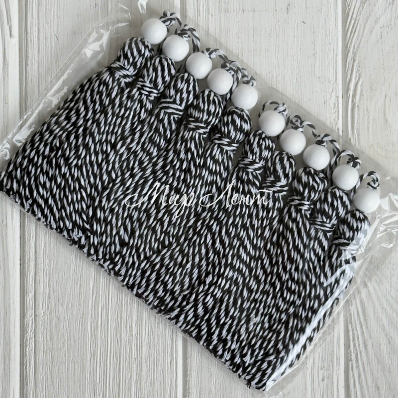 Кисточка декоративная с хлопка (D30196), 22 см, черно-белая, упаковка 10 шт.