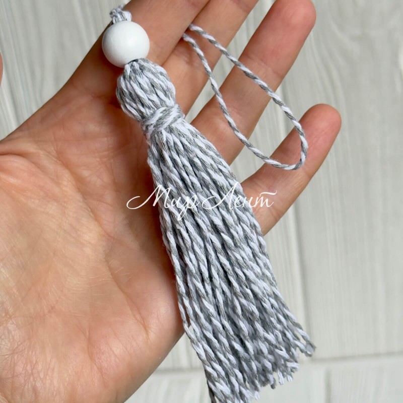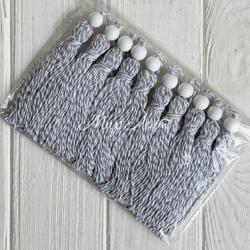 Кисточка декоративная с хлопка (D30196), 22 см, серо-белая, упаковка 10 шт.