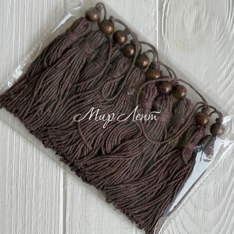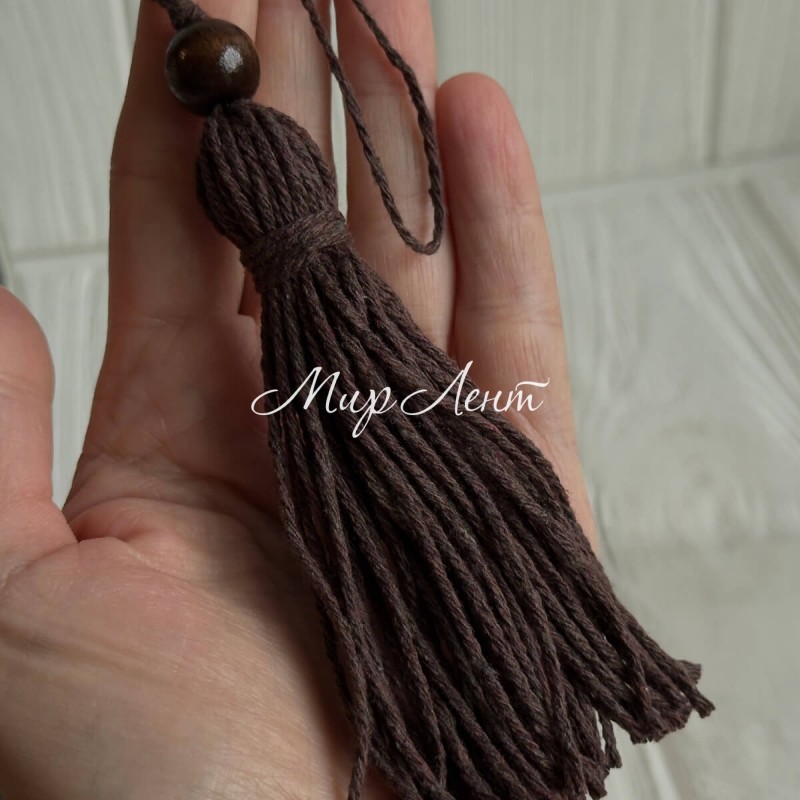 Кисточка декоративная с хлопка (D30196), 22 см, шоколадная, упаковка 10 шт.